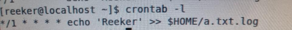 */1 * * * * echo 'Reeker' >> /home/reeker/a.txt.log