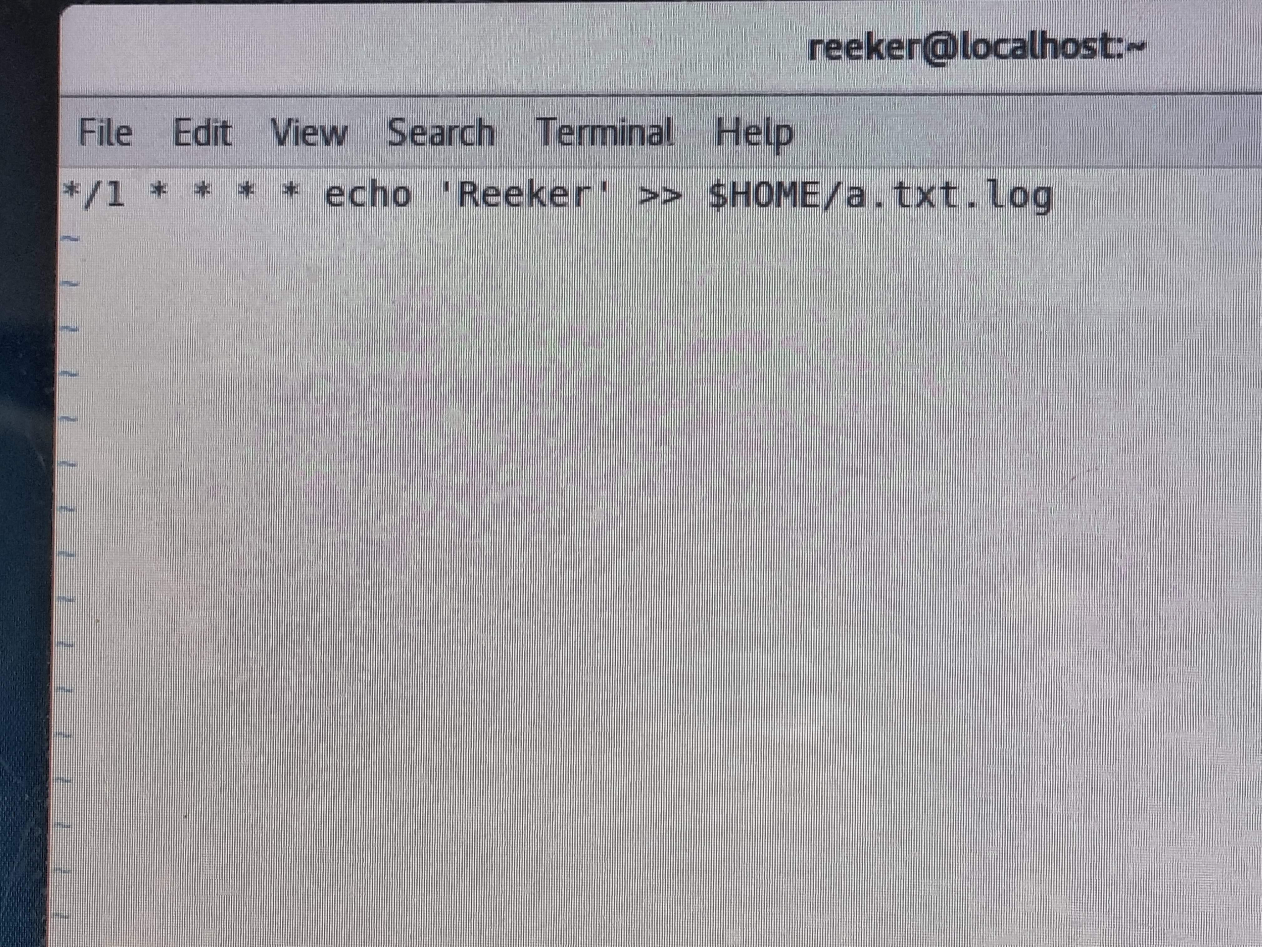 */1 * * * * echo 'Reeker' >> $HOME/a.txt.log