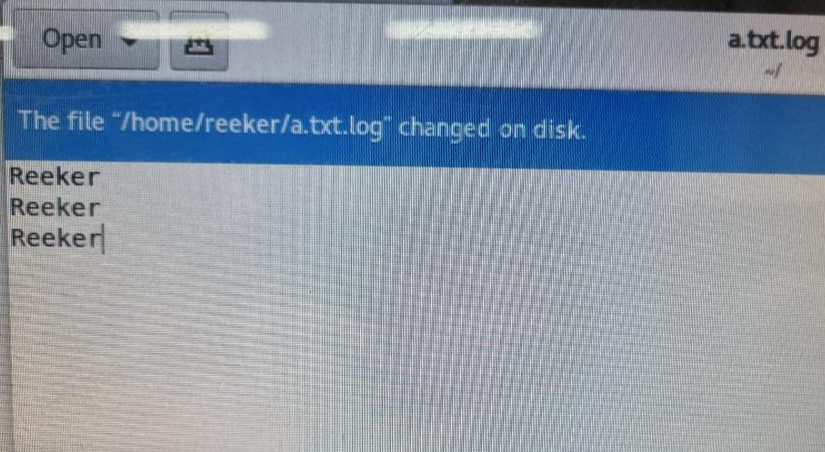 이 a.txt.log 파일에 Reeker란 문자열이 계속 출력되도록 만들 것이다.