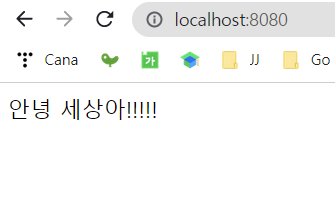 응답으로 '안녕 세상아!!!!'를 보내줘!가 된다.