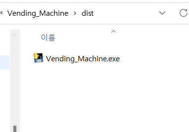 나는 Vending_Machine.exe란 이름으로 실행파일이 만들어져 있었고