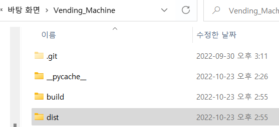 실행 파일을 만들면 dist랑 build 폴더가 자동으로 만들어진다.