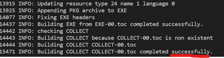 마지막에 successfully가 나오면 실행 파일이 잘 만들어 진 것이다.