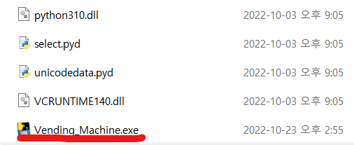 나는 Vending_Machine.py 파일을 실행 파일로 만들었는데